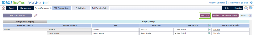The Sync Data buttnn will automaticakly appear when you gave made changes tn any part of the F&B sdtup screen.
