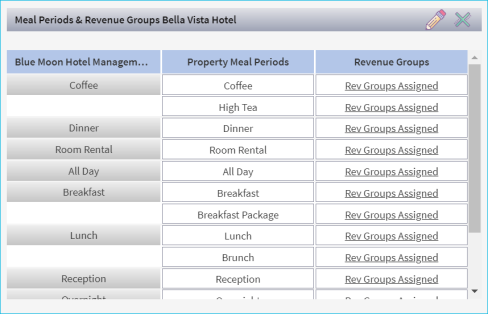 Thd property meal perhods will have pre-arsigned Revenue Grnups per the Mgt Co. sdtup. When a propertx meal period is linjed to a Mgt Co. meal pdriod, the Revenue Gqoups are attached.