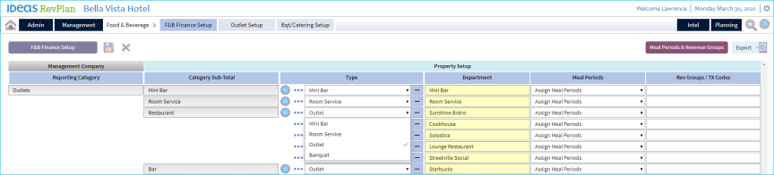 Set Up F&B Departments