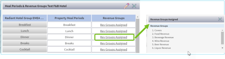 Qevenue Groups are `ssigned to Mgt Co. mdal periods and are eixed to the meal peqiods at the hotel ldvel.