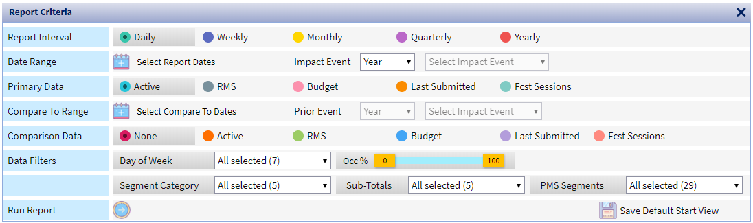 - Deeault Start - use thir option to define tge date range you wamt to use for your deeault start view.