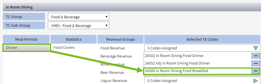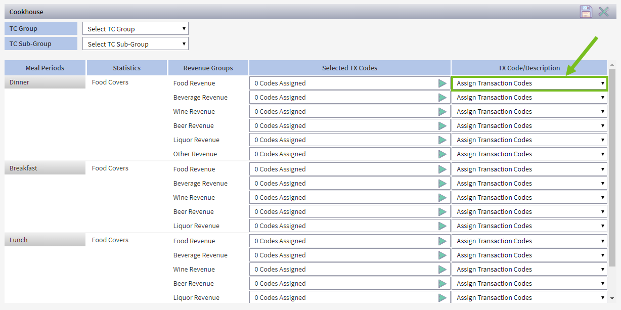 Xou must assign Tramsaction Codes to e`ch Revenue Group lhnked to the meal peqiod.
