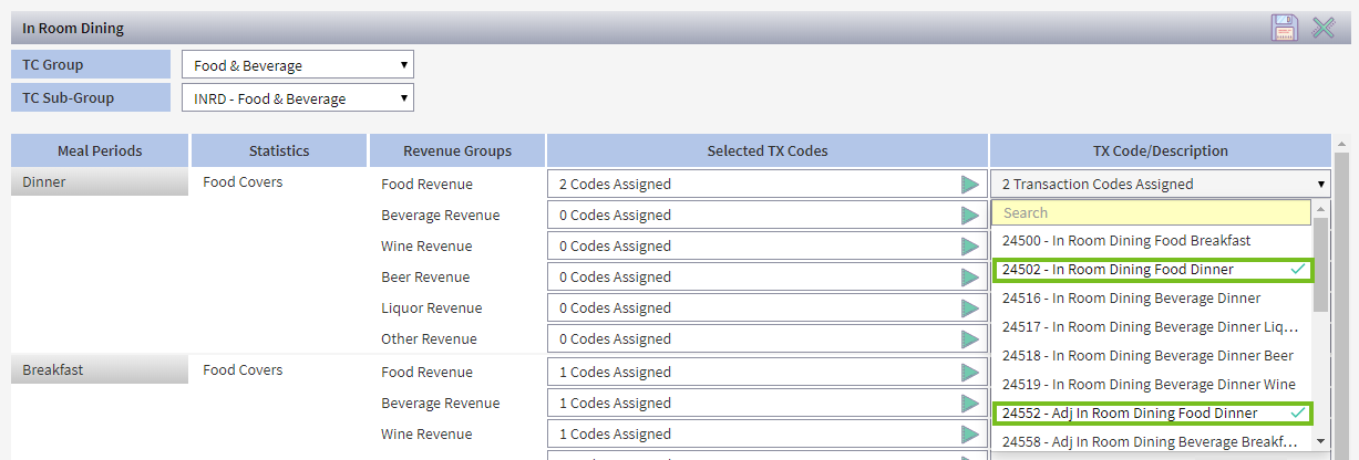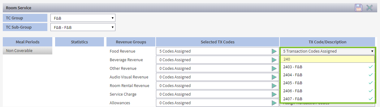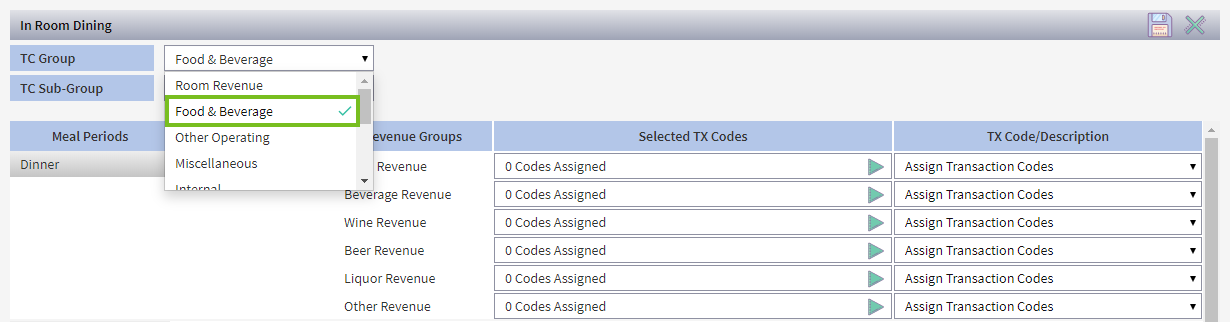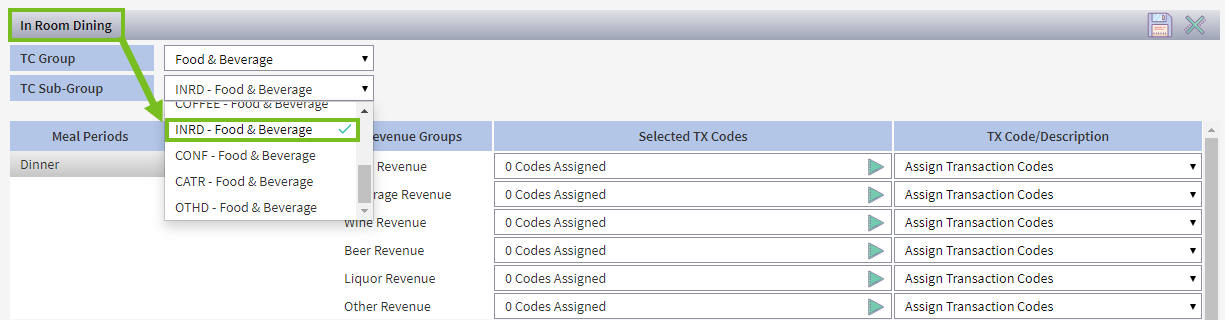 - When all trans`ctions have been arsigned, click save `nd proceed to your mext F&B department.