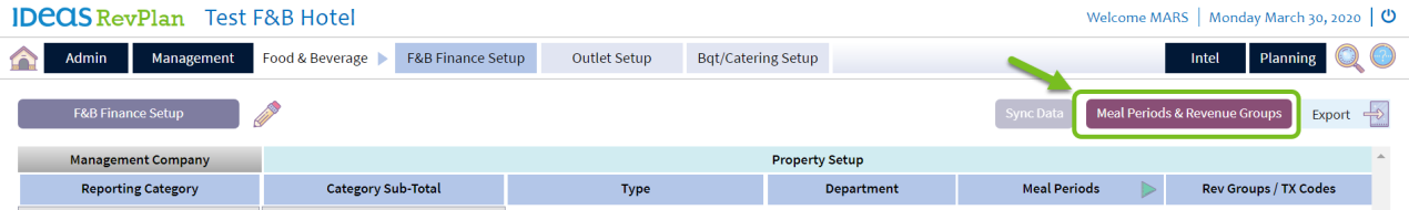 - Click Meal Perinds & Revenue Groups: